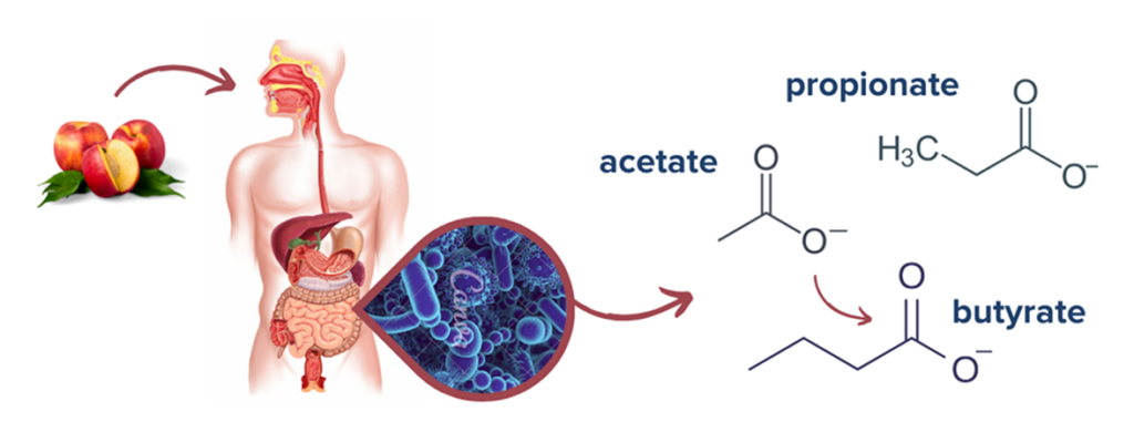 The human GI tract is not capable of digesting fiber directly. Instead, the fiber in foods passes along the GI tract undigested to the colon. These undigested fibers become food for gut microbes. Just like humans have preferred sources of food, microbial species have favorite fuel sources and may only be able to digest certain varieties of fiber.1 Feeding microbes their favorite foods may allow certain species to thrive while starving out others.3 Since different fiber types have varying degrees of fermentability and different chemical structures, the pool of metabolites produced following microbial fermentation also varies. This complicated relationship between fiber, the gut microbiome, and the metabolites produced has major implications on human health–especially in gastrointestinal conditions like inflammatory bowel disease.