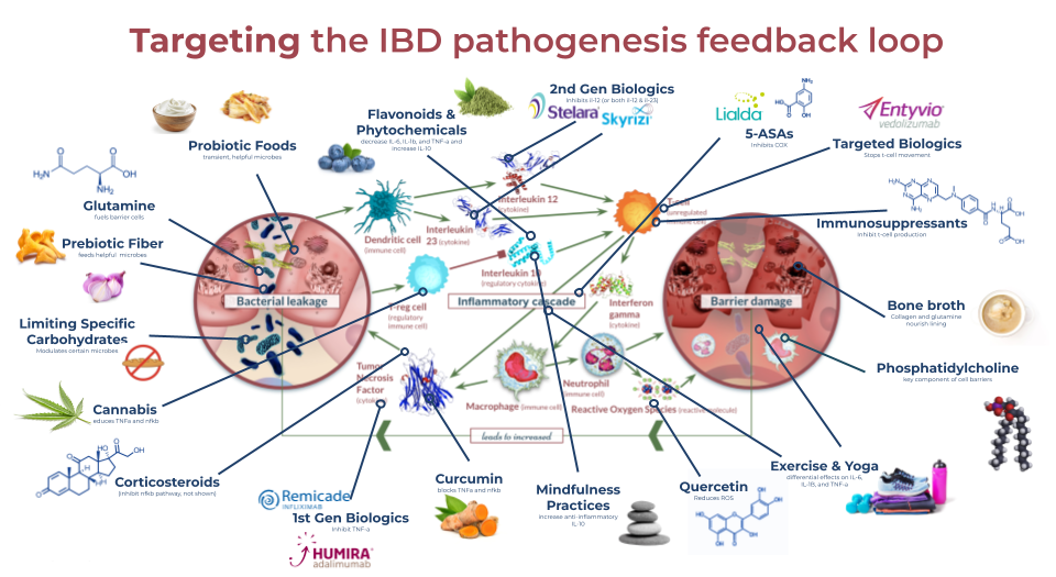 Comorbid conditions can influence the best path forward concerning lifestyle interventions, dietary changes, and treatment strategies that are best suited to address an individual’s IBD and other health concerns. In some cases, treatment options may be synergistic and promote the improvement of both conditions. In other cases, doctors may need to watch out for contraindications or harmful interactions between medications. Either way, understanding the unique history and needs of each individual is the best way to successfully tailor treatment strategies and promote health and wellbeing.